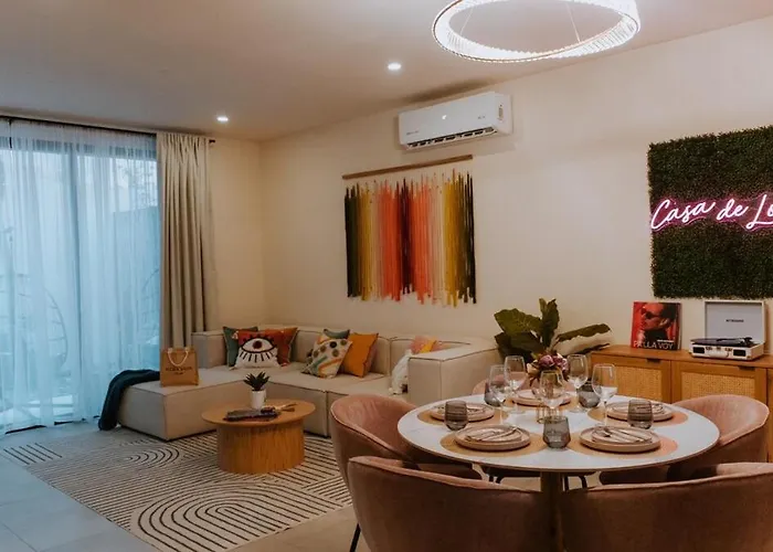 Featuring an indoor pool for guests' relaxation, the 2-bedroom Casa De Lola Tulum Villa is located approximately a 25-minute stroll from Piramide del Pensamiento Positivo. Featuring a terrace, the Tulum holiday home is situated a short way from La Iglesia de Jesucristo de los Santos de los Ultimos Dias Church.